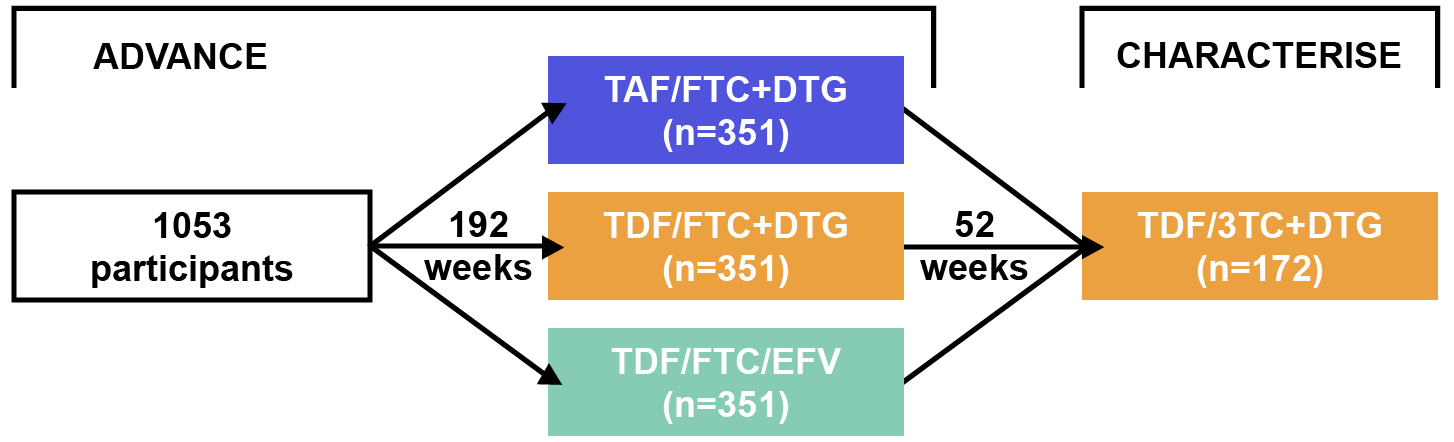 CHARACTERISE enrolled participants previously part of ADVANCE and evaluated 1-year outcomes after a switch to TDF/3TC/DTG