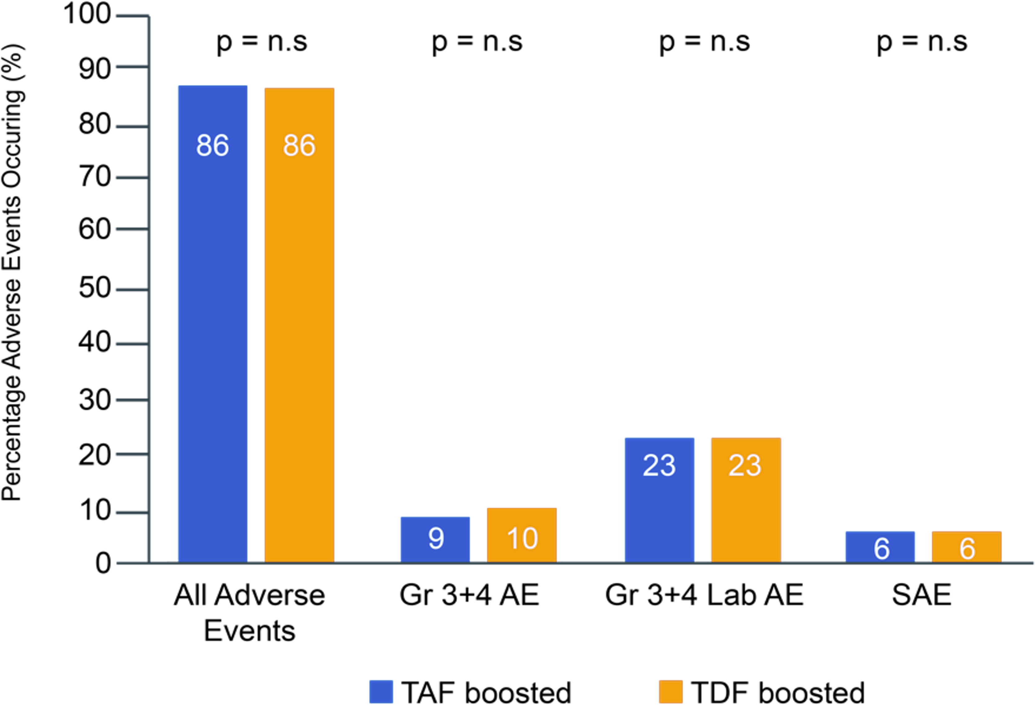 • A significant difference (P=0.0004) in efficacy was shown in the boosted subgroup in favour of TAF, but no difference was seen in the unboosted subgroup