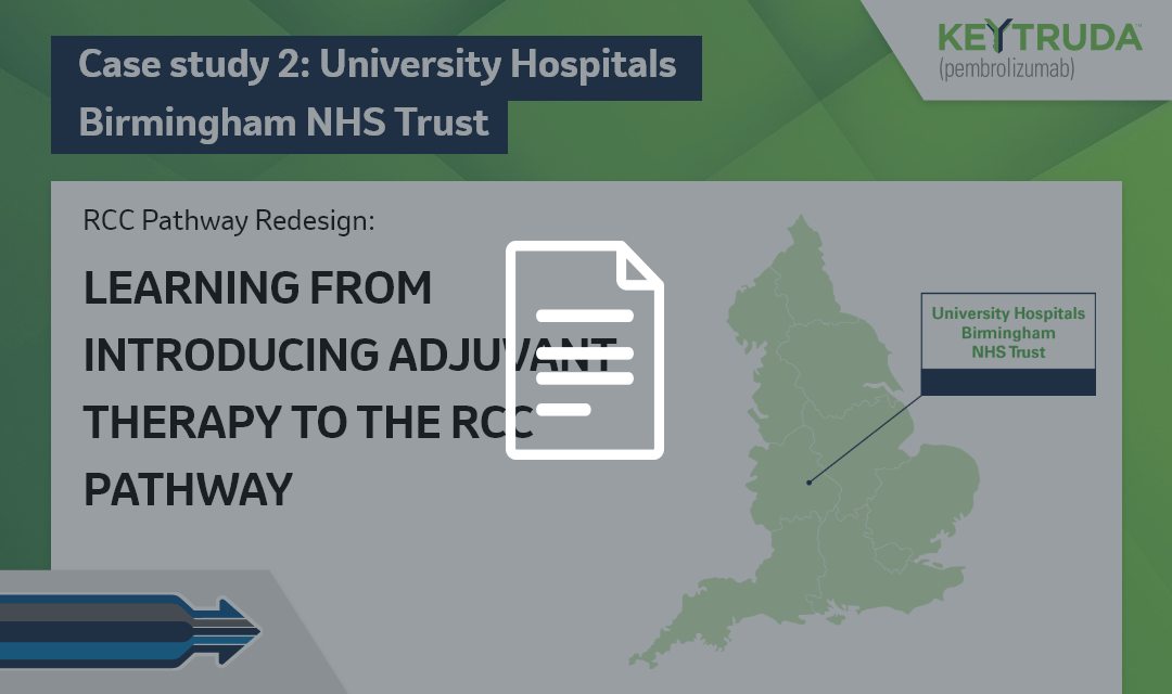 Case studies outlining pathway redesign can be a valuable resource for NHS healthcare professionals, to support in improving RCC patient pathways and healthcare delivery in the adjuvant setting, within current capacity and workforce constraints.