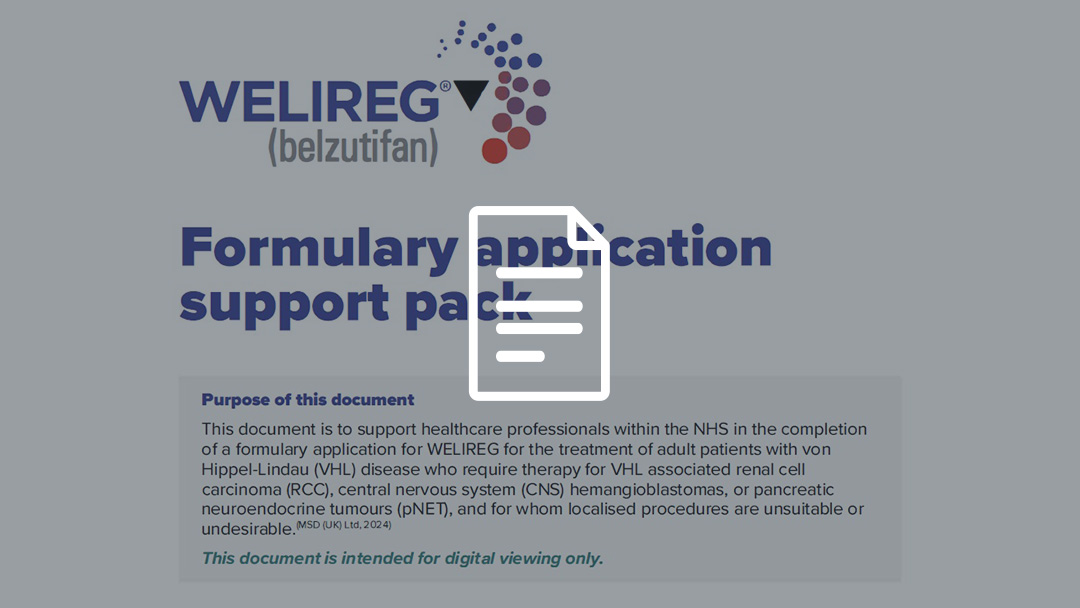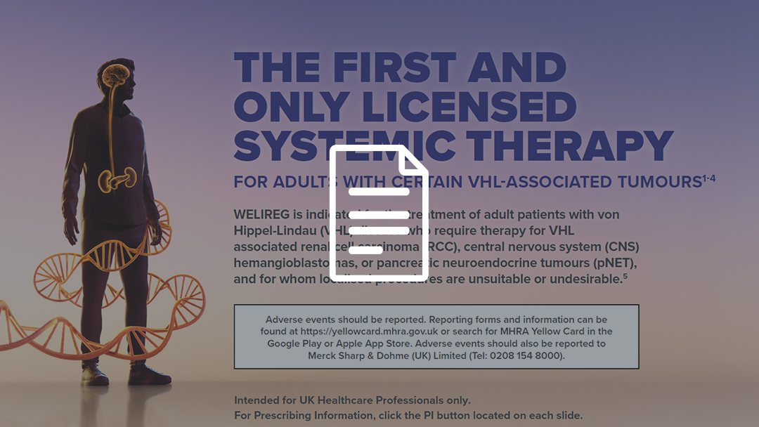WELIREG is indicated for the treatment of adult patients with von Hippel-Lindau (VHL) disease who require therapy for VHL associated renal cell carcinoma (RCC), central nervous system (CNS) hemangioblastomas, or pancreatic neuroendocrine tumours (pNET), and for whom localised procedures are unsuitable or undesirable.